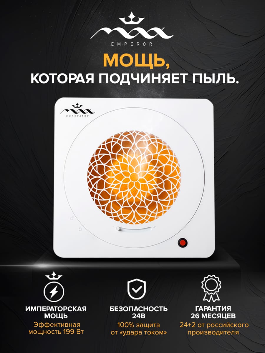 Это честный показатель реальной пользы. Обычные вытяжки могут потреблять много электричества из розетки, но при этом плохо тянуть (энергия уходит в нагрев и гул). Эффективная мощность — это расчетная величина, которая показывает, какую реальную работу по всасыванию выполняет пылесос. Благодаря новому турбороторному вентилятору MAX Император создает мощнейшую тягу (давление 528 Па), работая эффективнее аналогов при меньшем потреблении электричества.