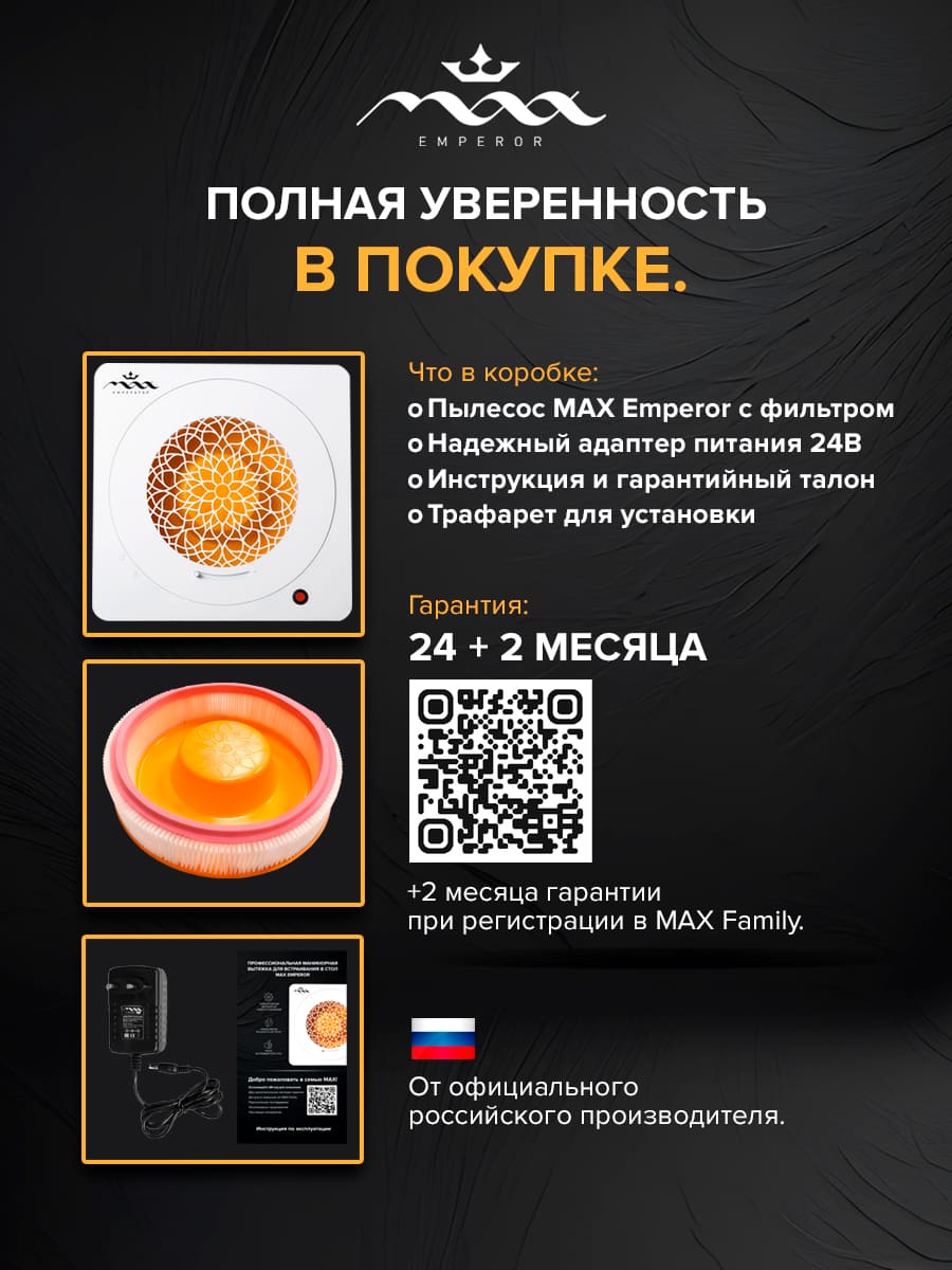✅ Гарантия: 24 месяца (+2 месяца в подарок при регистрации в клубе MAX Family).